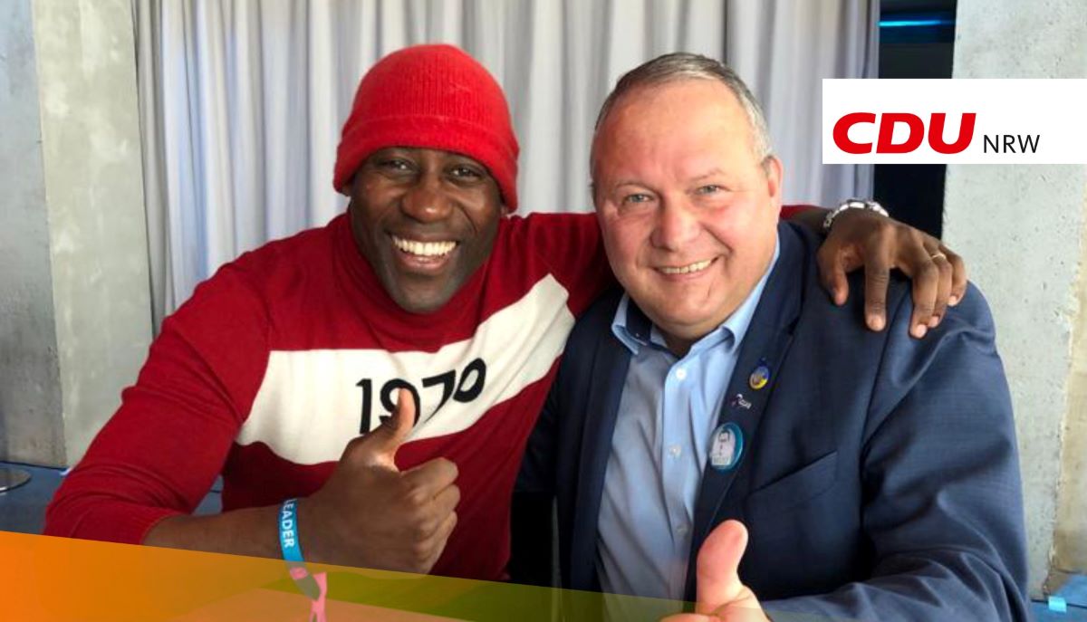 Der Staatssekretär und Landtagabgeordnete Josef Hovenjürgen gratuliert Joe Chialo, Mitglied des CDU Bundesvorstands, zu seiner Nominierung als Kultursenator in Berlin. "Auf Joe Chialo warten interessante und herausfordernde Aufgaben und ich bin mir sicher, dass er diese erfolgreich und kreativ umsetzen wird", so Hovenjürgen.