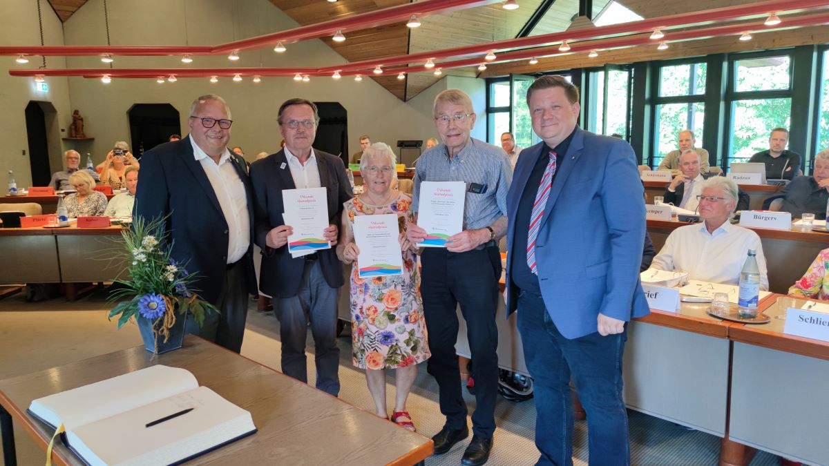 Im Rahmen der Ratssitzung in Haltern am See hat der Parlamentarische Staatssekretär Josef Hovenjürgen MdL letzten Donnerstag zusammen mit Halterner Bürgermeister Andreas Stegemann die Gelegenheit genutzt, Heinrich Wiengarten („Freibad Sythen e.V.“), Marianne Stenner (Verein für Altertumskunde und Heimatpflege Haltern am See e.V. ) und Hans-Josef Schild (Gruppe „alte Feger“ des Heimat- & Schützenvereins Hullern) die Urkunden zu überreichen, die belegen, dass ihre Vereine/Gruppen mit dem 1. Heimatpreis ausgezeichnet worden sind.