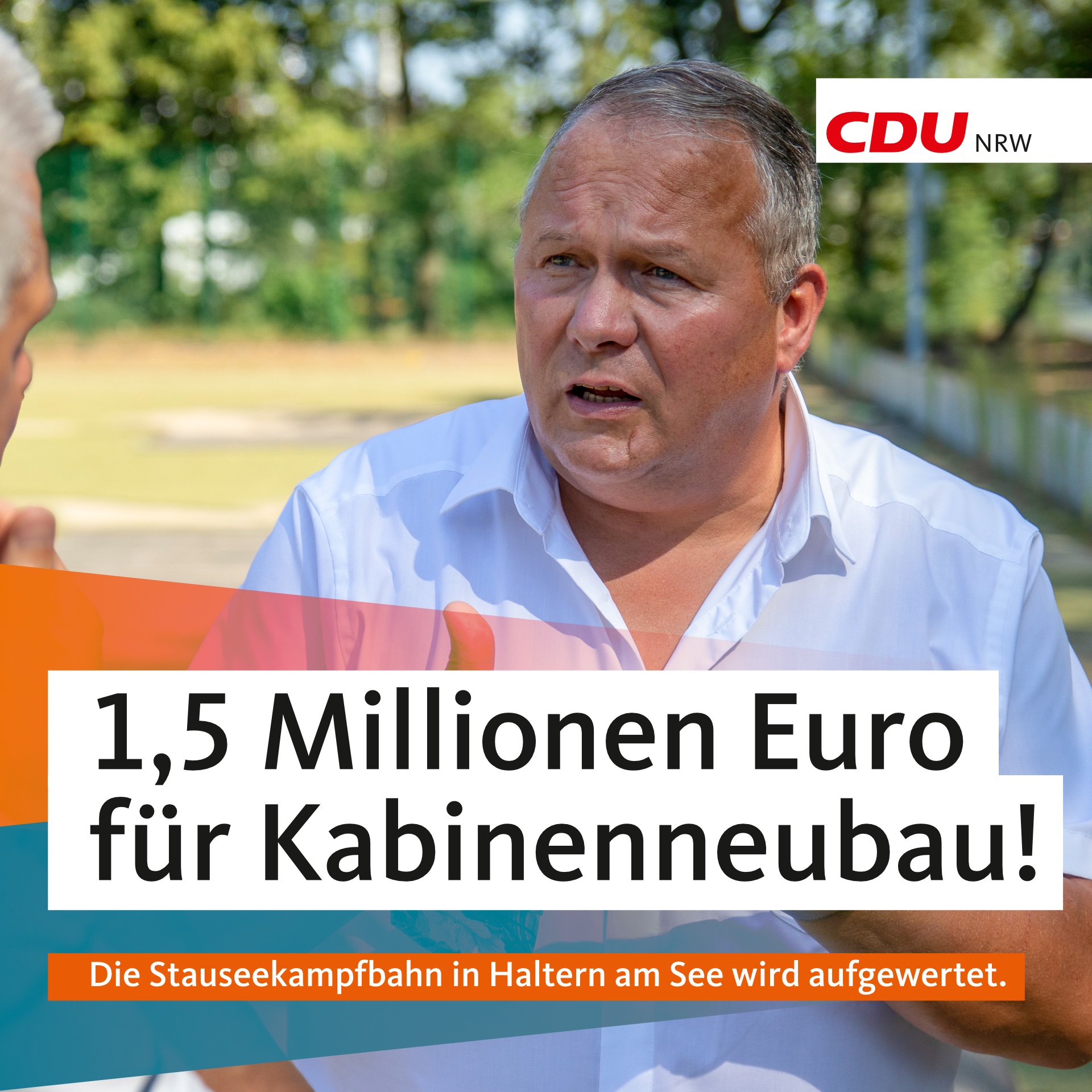 Zum Ende der Sommerferien übermittelt der Landtagsabgeordnete Josef Hovenjürgen eine gute Nachricht für seine Heimatstadt: „Ich freue mich, dass durch den Investitionspakt „Sportstätten 2022“ die Stadt Haltern am See 1,5 Millionen Euro für den Neubau der Kabinengebäude auf der Stauseekampfbahn erhält.